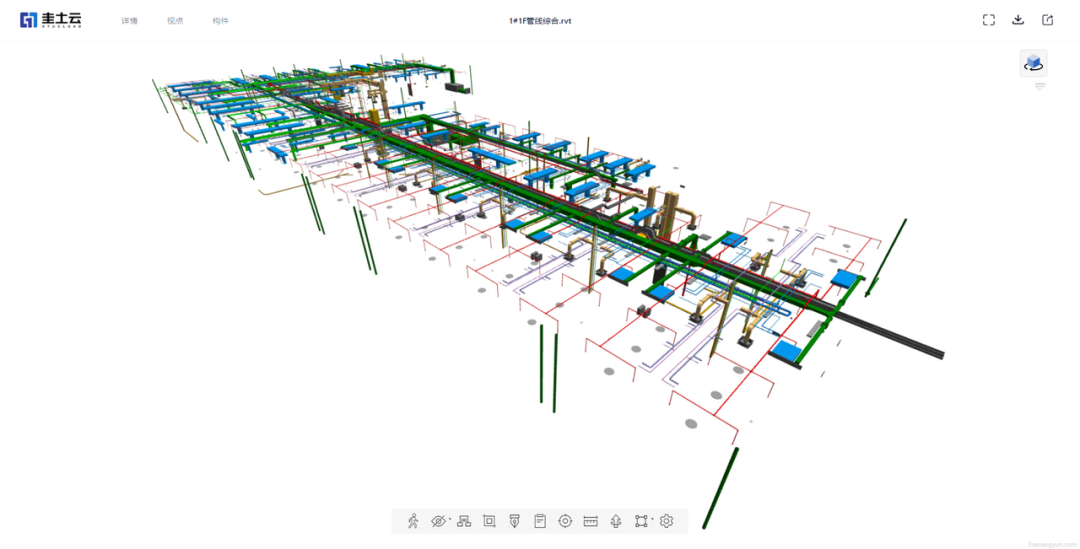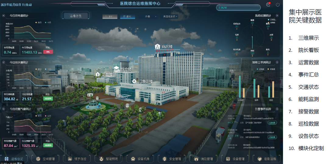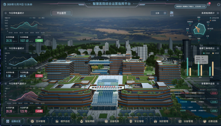 基于BIM技术,采用物联网整体架构,利用云端服务作为集中管控中心,将建筑运维过程中的各个系统(如安防、消防、物业、自控、能耗、空间、定位、环境等)以BIM模型为载体统一整合,实时展示,实现人、设备与建筑之间的互联互通,同时结合数据分析、性能分析与模型分析,为建筑的运维提供一个综合性的平台,从而更好的发挥建筑的功能与作用。